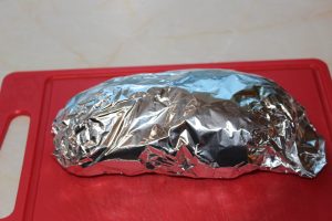 Ventetiden! Pak dyret ind i sølvpapir og lad den hvile i 10-15 minutter.