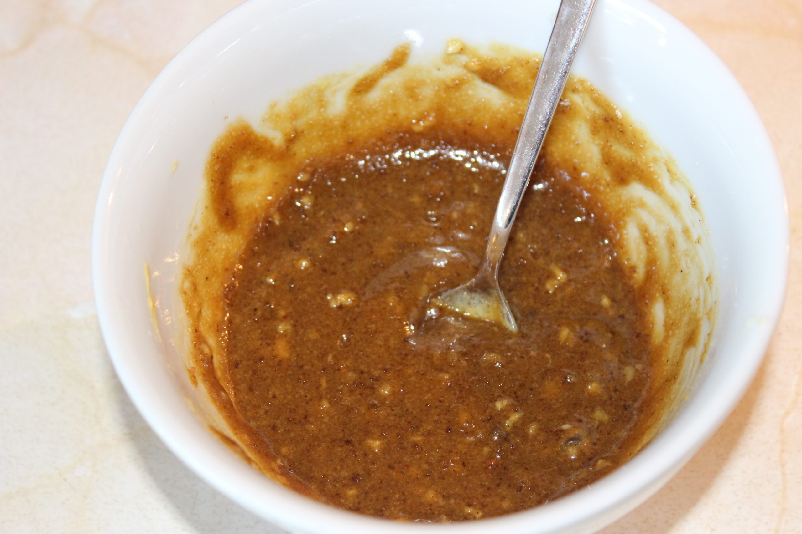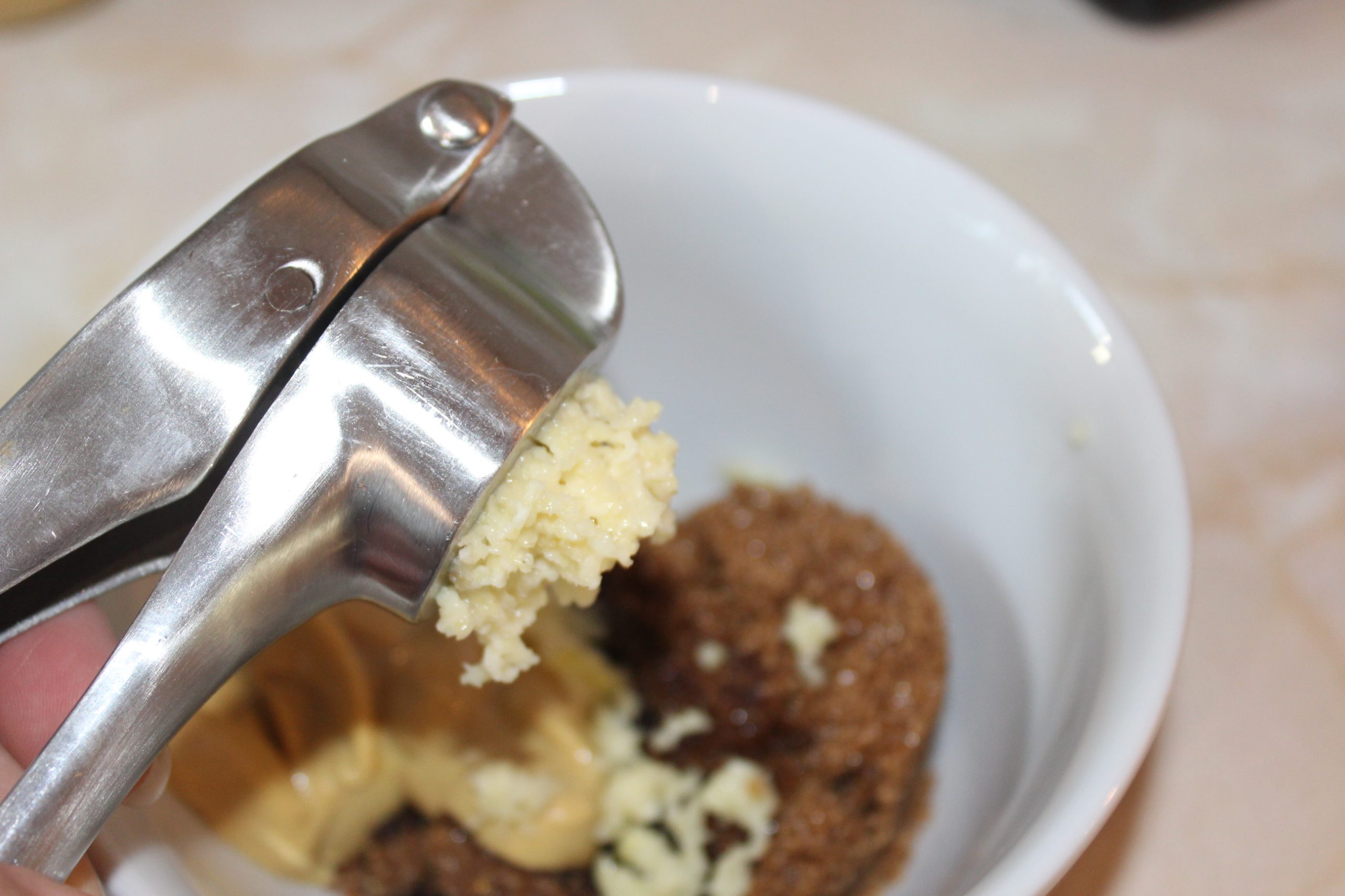 • Start med at røre brun farin, dijon sennep, olivenolie, hvidløg og salt og peber sammen til en marinade