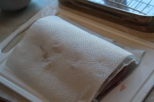 Tør kalkunbrystet. Det er det billedet her illustrerer. Køkkenrulle på kød = tør kødet.