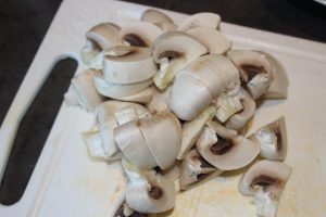 Champignonerne skærer du i både.