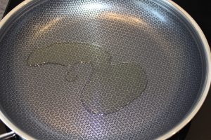 Varm lidt olivenolie op på en pande.