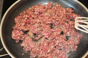 Og så starter vi med at brune oksefarsen.